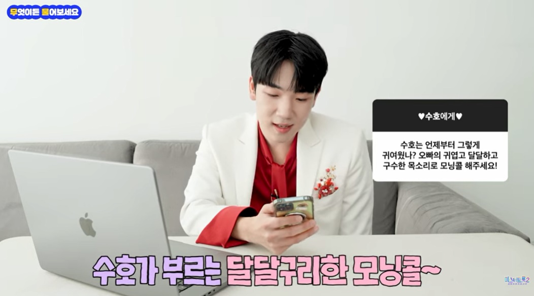 유튜브에 올라왔던 '미스터 트롯2 최수호 무물타임'에 최수호가 모닝콜을 불러주었었죠!
